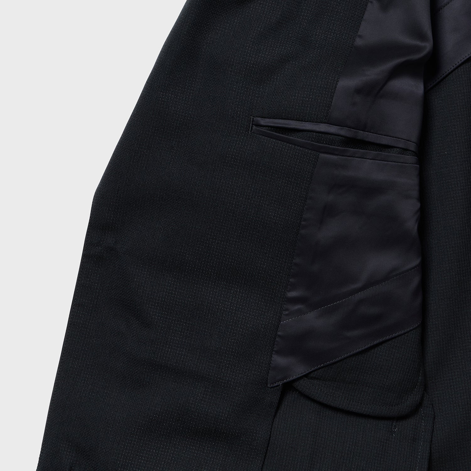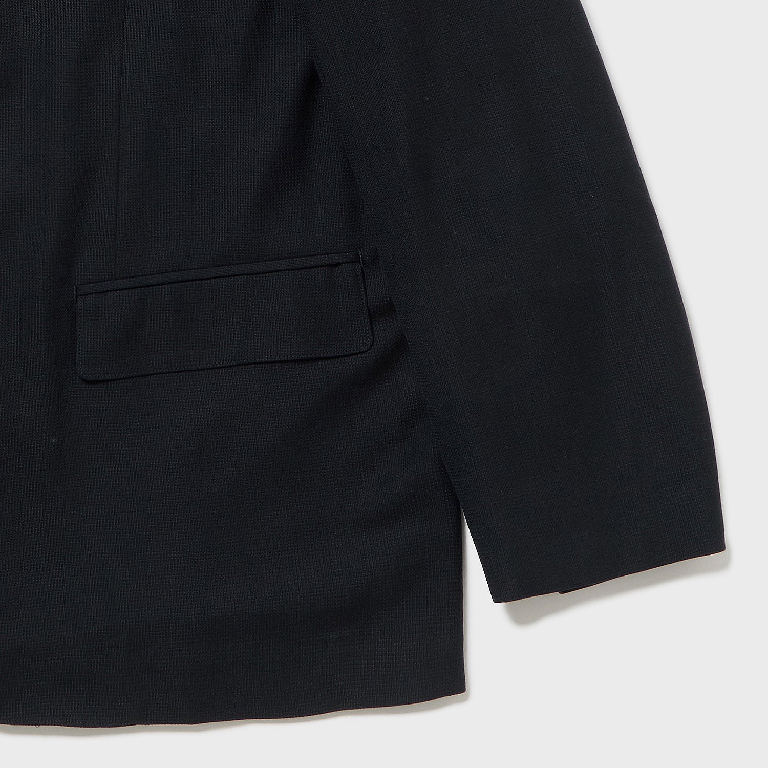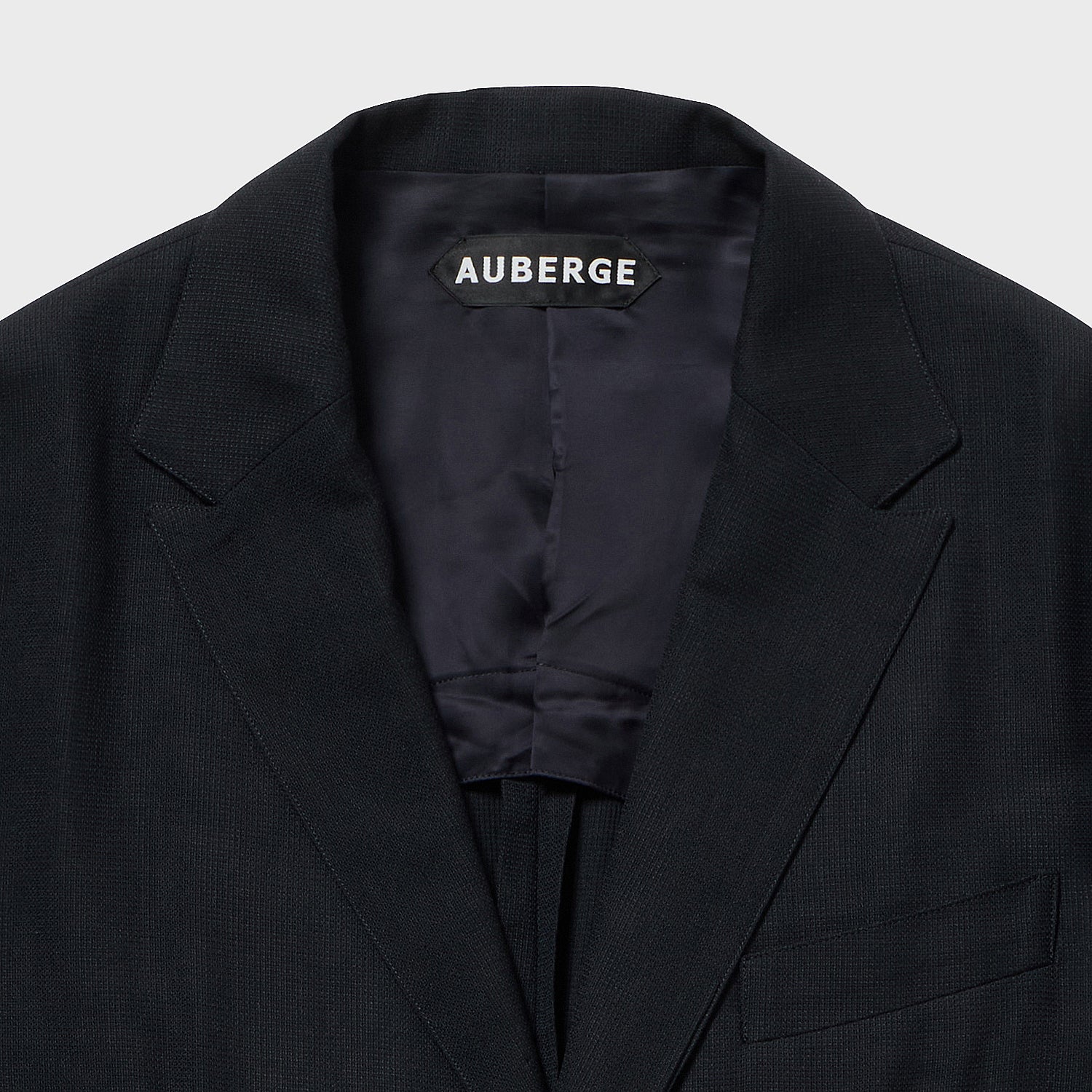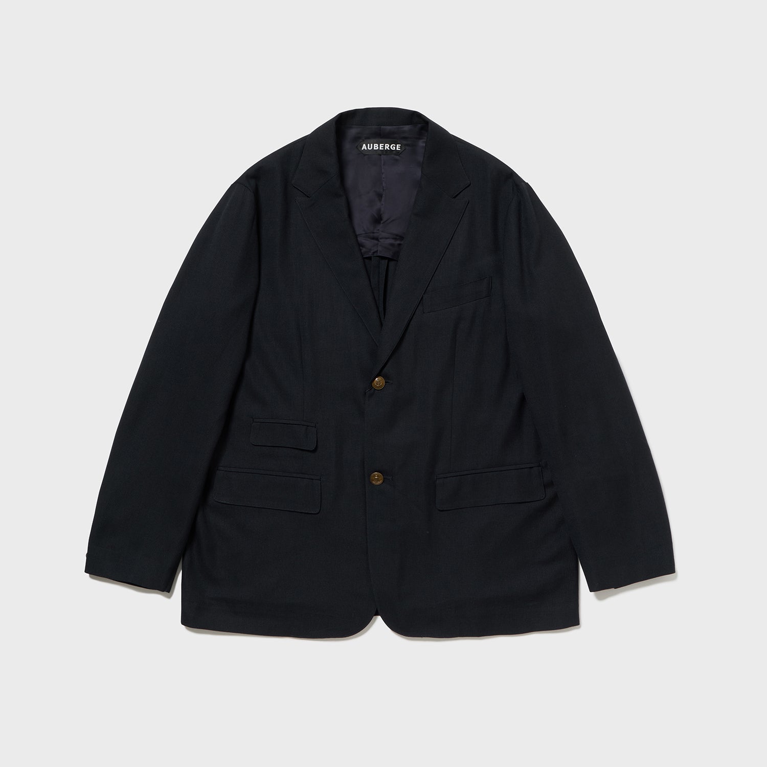 A boxy tailored jacket with a slightly loose fit around the shoulders. The length is slightly longer and narrower. The semi-peaked lapels and casual fit give it a modern feel.