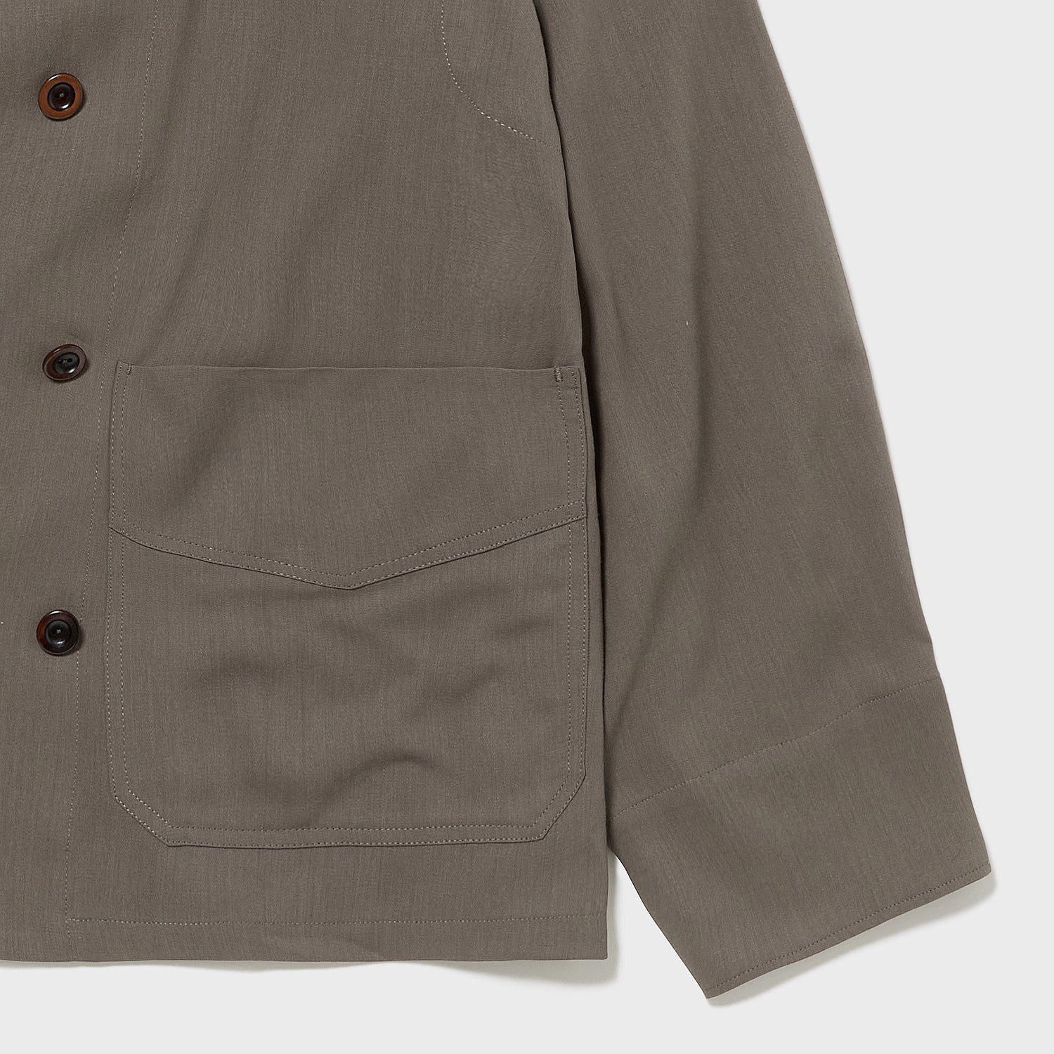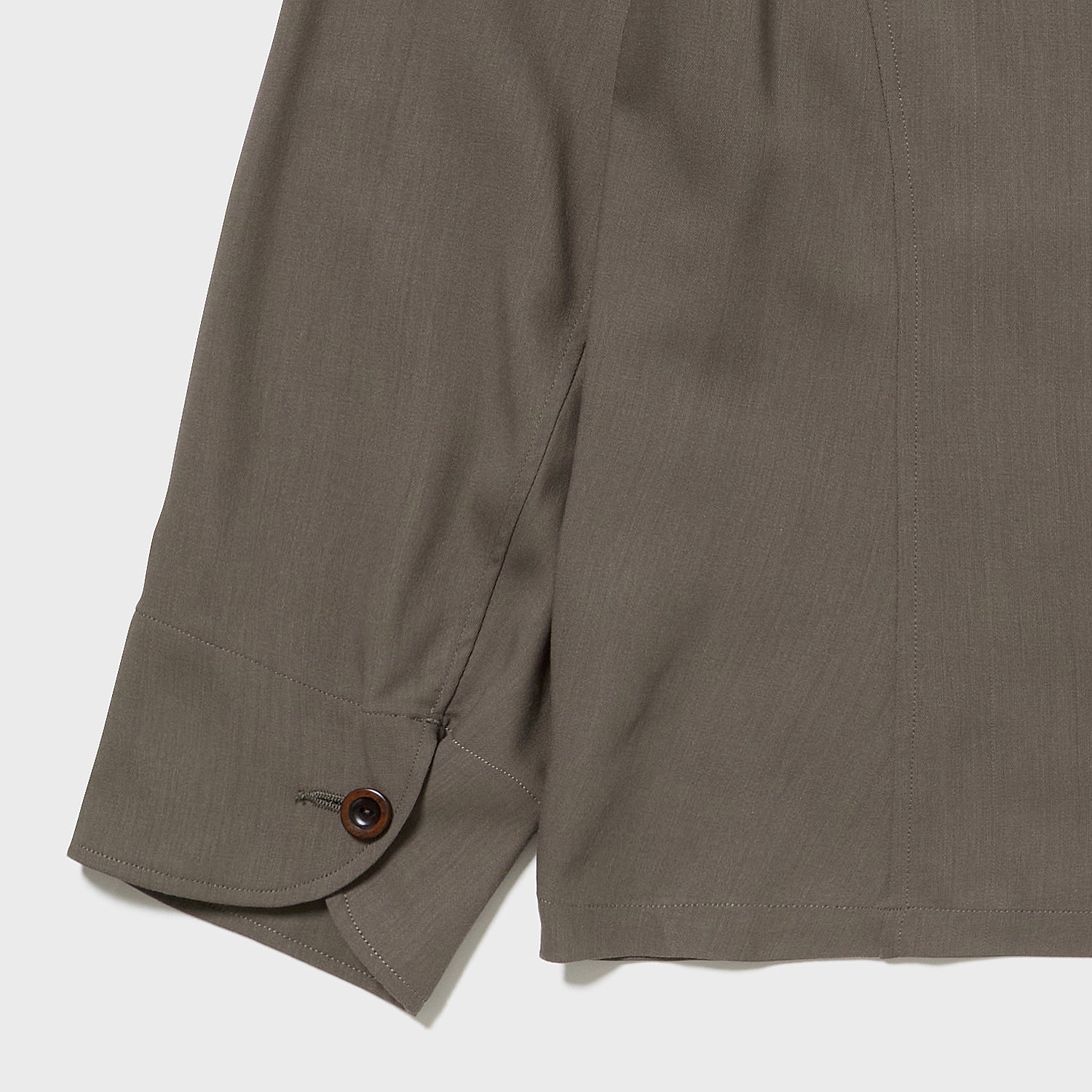 スーパー140’Sをウォッシャブル加工し、そこから強撚糸を作り、2×1綾組織でギャバジンに仕立てました。