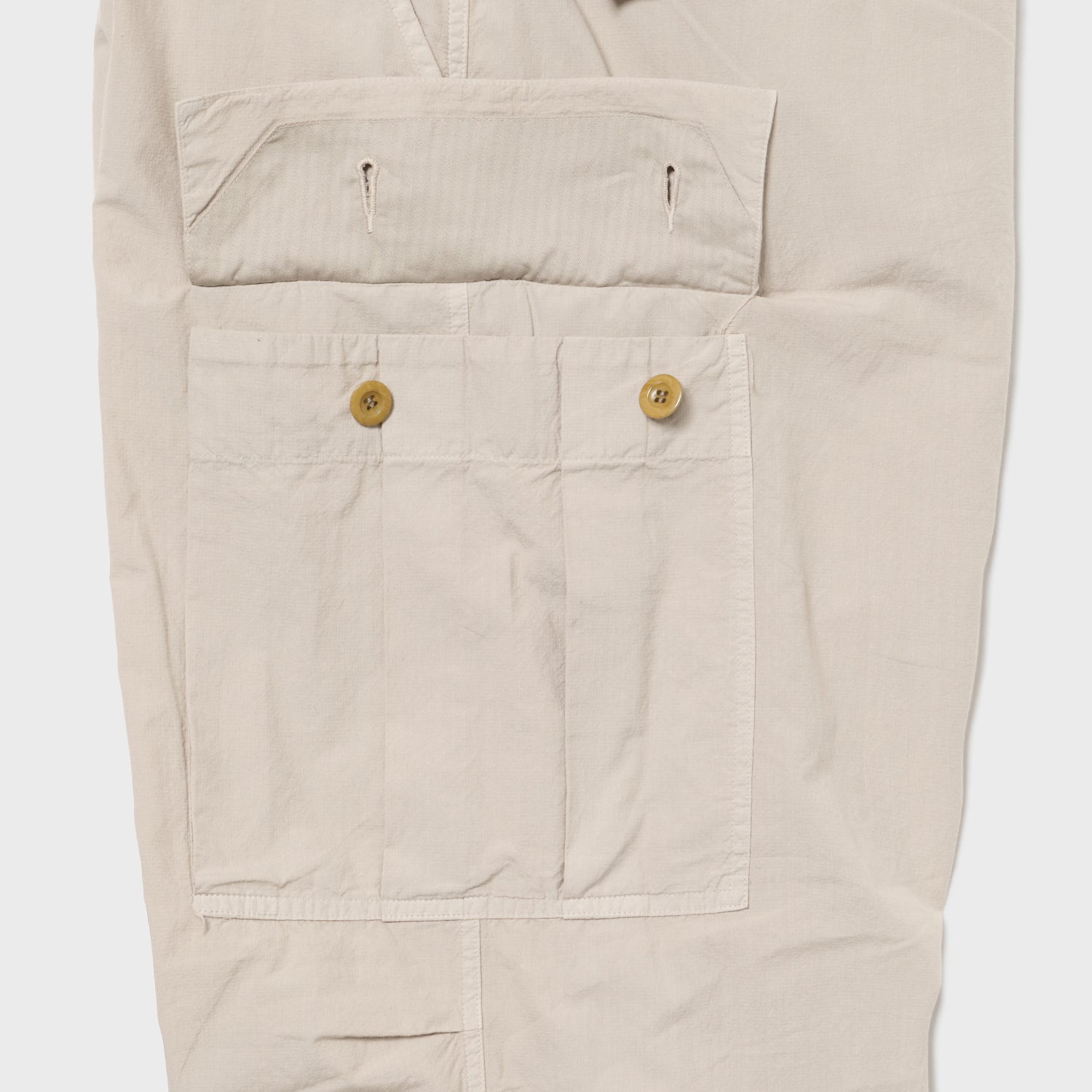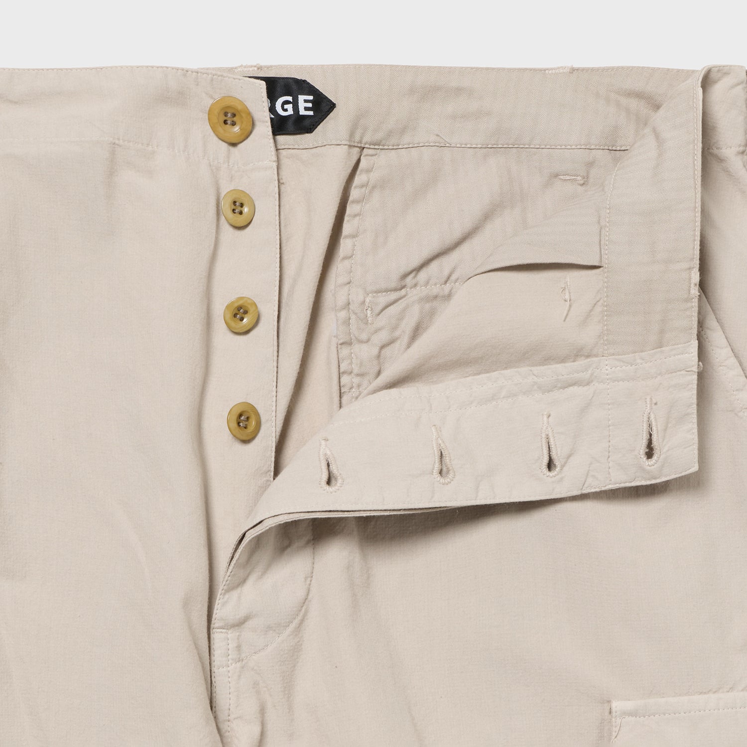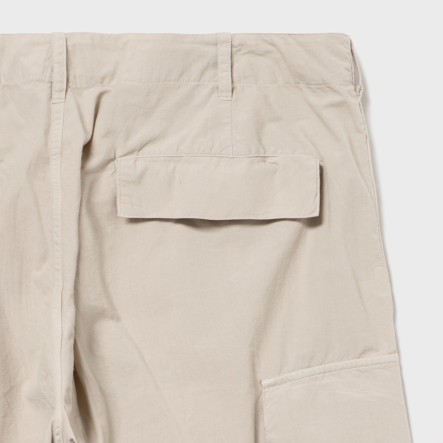 元々はこちらもベトナム期のジャングルファティーグ6ポケをベースに考えましたが、当時のものは意外に細く、今の時代性を鑑みた結果、このワタリ幅・裾幅となりました。