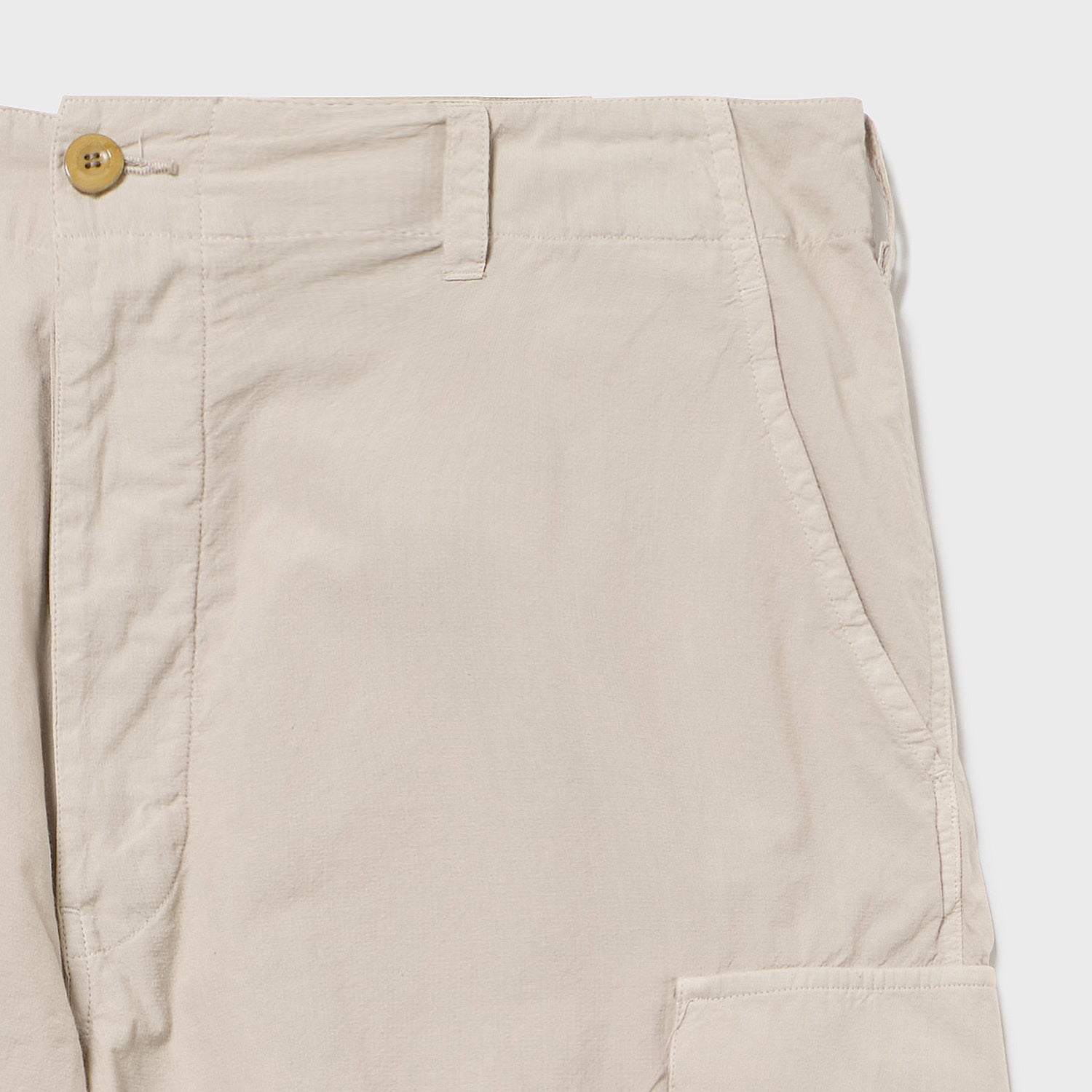こちらもワイドめな6ポケットバギーなデザインで、最高の肌触り、身離れの良いドライタッチ、そしてこのシルエットは夏のパンツにぴったりの1本です。